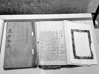 展出的《孟子正义》三十卷(清焦循撰稿本,潘氏宝山楼旧藏)。本报记者 李健摄/光明图片