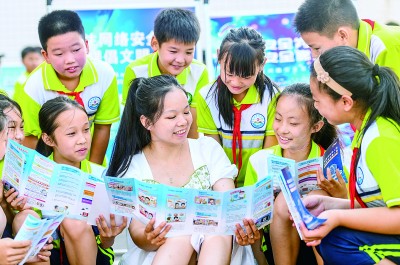 湖南省永州市道县第四小学,老师为学生讲解网络安全知识。蒋克青摄/光明图片