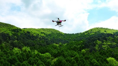 辽宁省海城市森林专业扑火队利用无人机在一处林场进行照明作业。新华社发