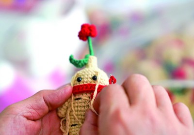 吉林省长春市,手艺人在编织“参仙”公仔。新华社发